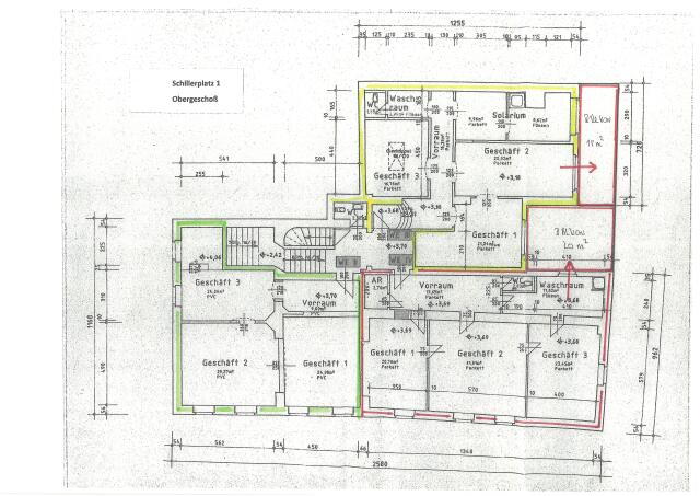 Geschäft/Whg. TOP II (Süd/West) = 3 Räume, 1 Vorraum, 1 WC = 86,09m²