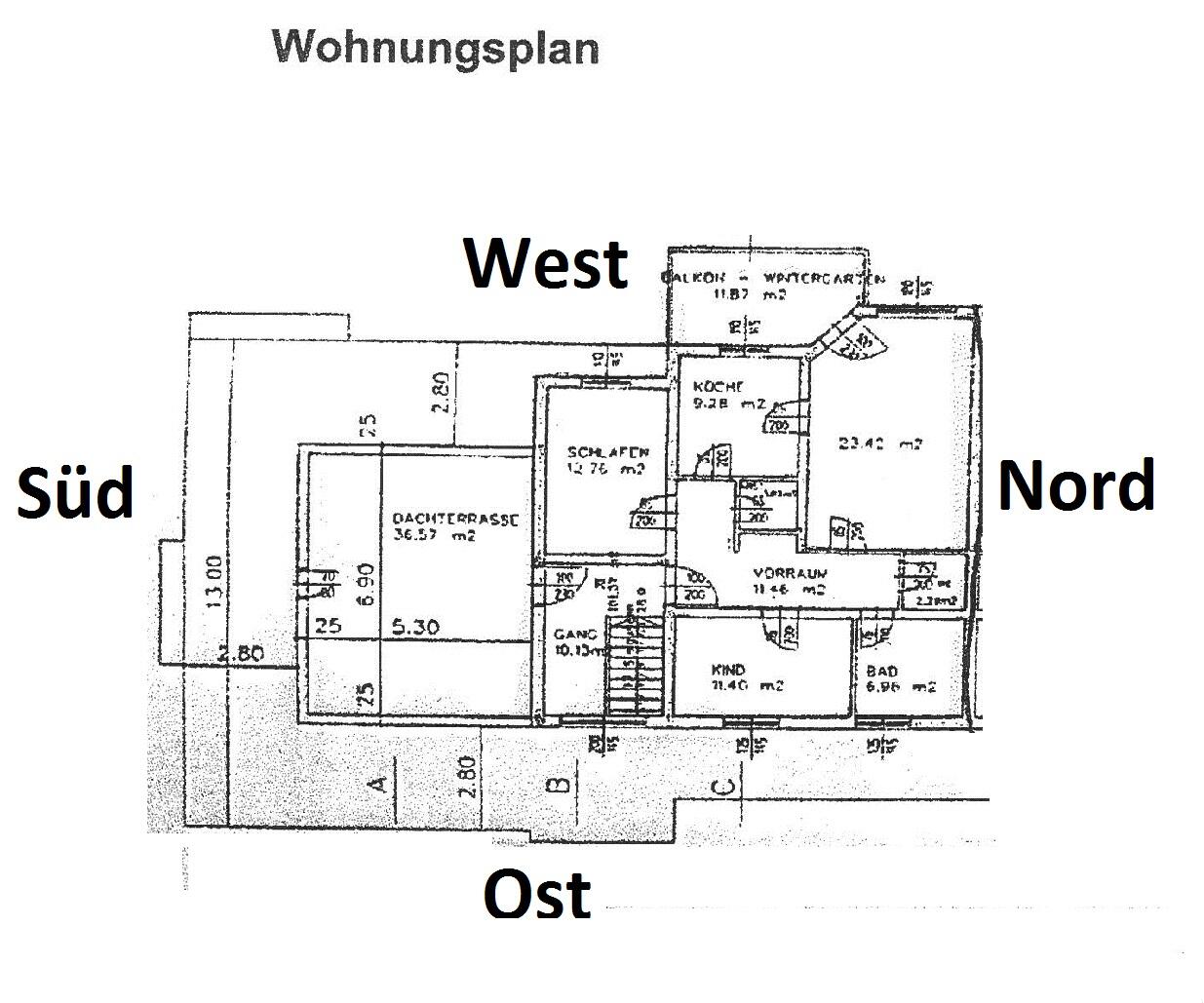 ...Ÿer Gangfläche (10,15m²), 1 Vorraum (11,46m²), 1 Wohnzimmer (23,42m²) mit Wintergarten (11,87m²) mit herrlichem freien Ausblick, 1 Wohnküche (9,28m²), 1 Elternschlafzimmer (12,76m²), 1 Kinderzimmer (11,40m²), 1 Bad mit Badewanne, Dusche und Fenster (6,96m²), 1 WC extra (2,38m²), 1 Abstellraum (1,50m²) und 1 großes geschlossenens Kellerabteil. Wohnungsmaße lt. Planangaben ohne Gewähr.