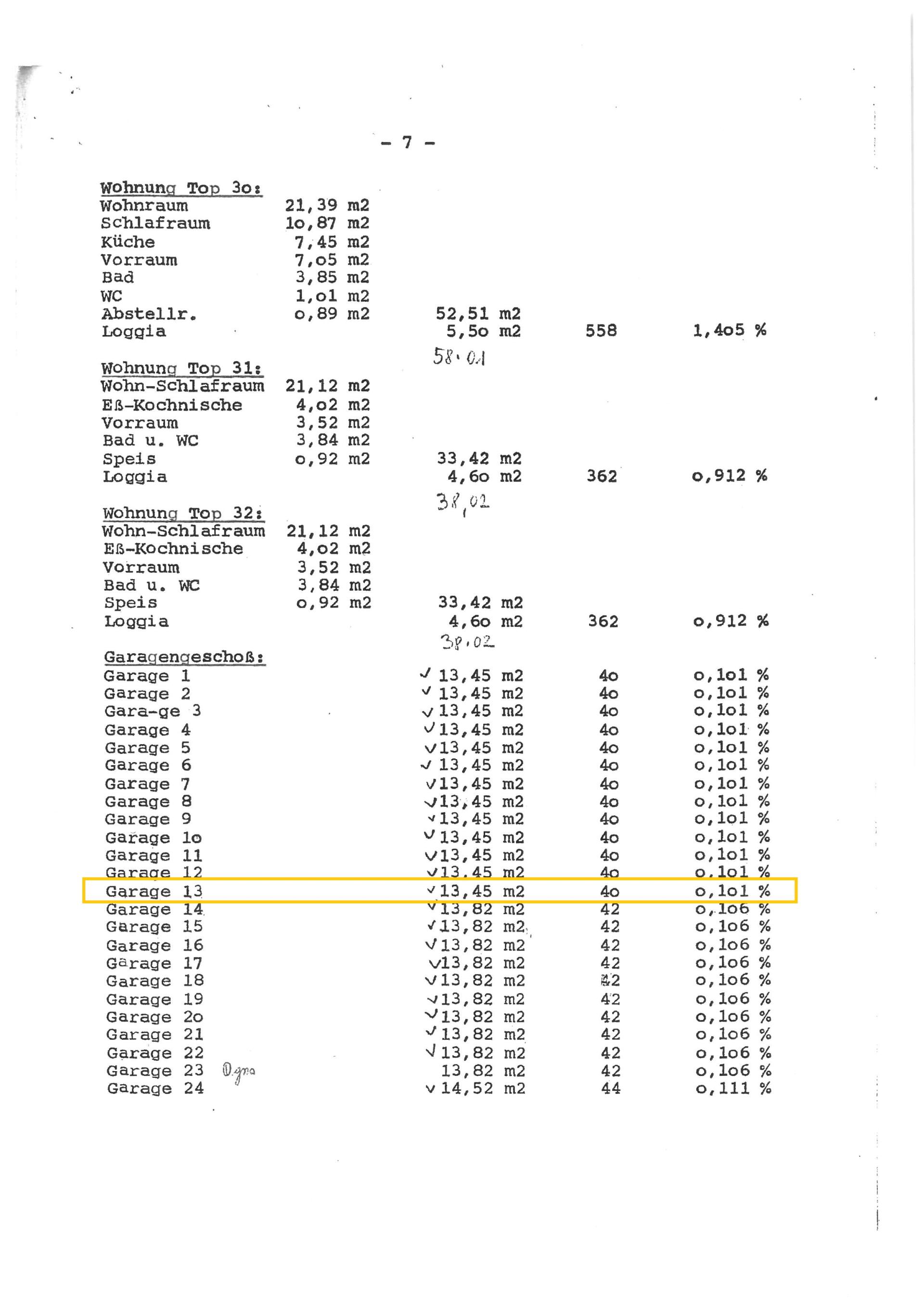 1 Garage TOP 13 (ca. 13,45m²).