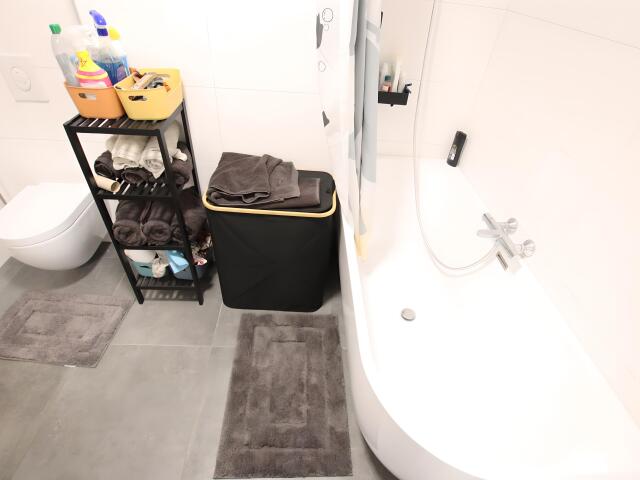 Neues, traumhaftes Bad mit Badewanne und WC.