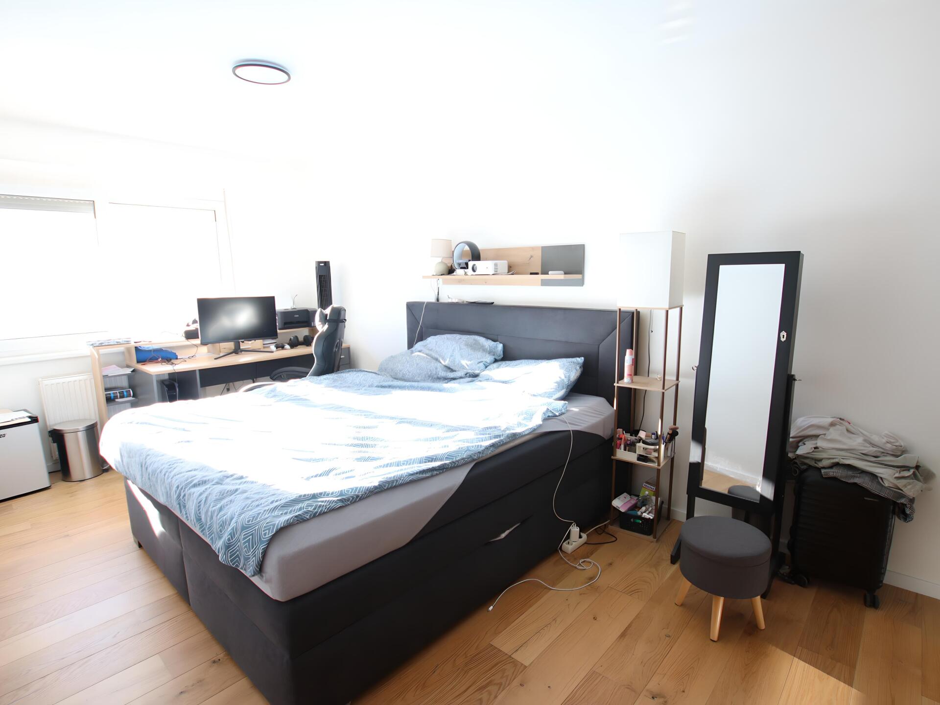 neue Eichenparkettböden im Wohn-/Esszimmer und im Schlafzimmer