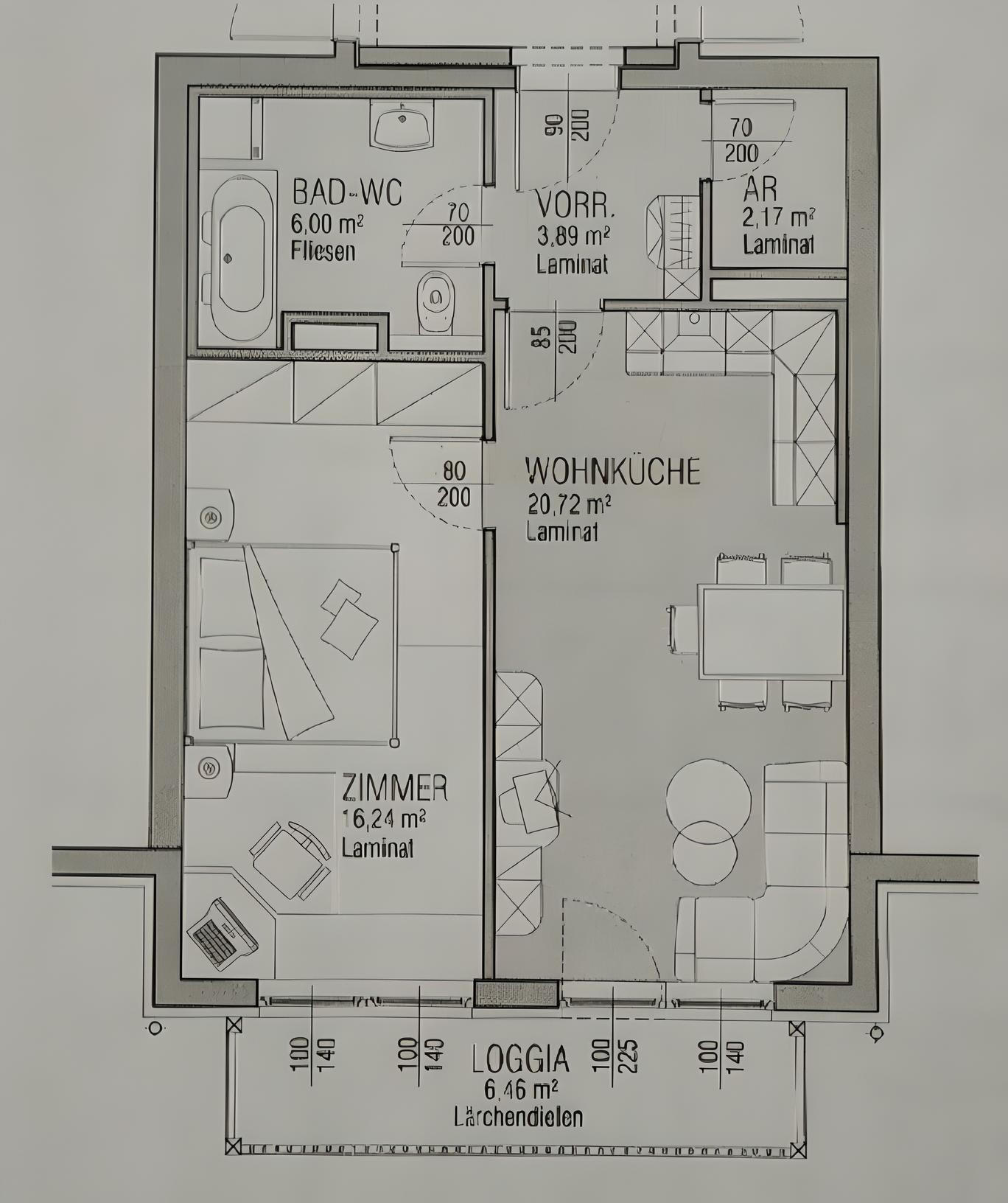 ...sszimmer mit offener schöner Küche (20,72m²) mit Westbalkon (6,46m²), 1 großes Schlafzimmer (16,24m²), 1 neues Bad mit Badewanne und WC (6,00m²), 1 Abstellraum (2,17m²) und 1 großes Kellerabteil. Alle Flächenangaben lt. Pläne und Nutzwertgutachten und ohne Gewähr! Änderungen und Irrtümer vorbehalten!
