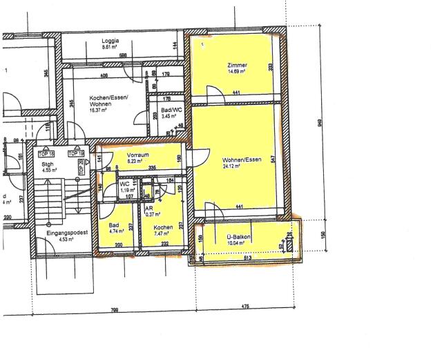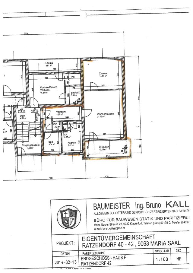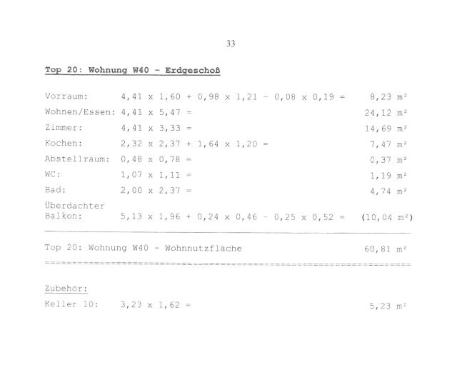 ... (10,04m²), 1 Schlafzimmer (14,69), 1 schöne Küche (7,47m²), 1 Bad mit Badewanne und Fenster (4,74m²), 1 WC extra (1,19m²), 1 Abstellraum (0,37m²) und 1 Kellerabteil (5,23m²). Alle Flächenangaben lt. Plan und Nutzwertgutachten und ohne Gewähr! Änderungen und Irrtümer vorbehalten!