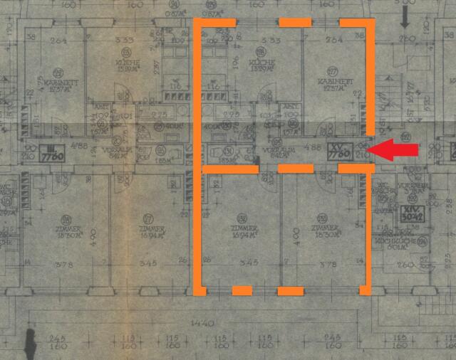 ... (8,42m²), 1 große neue Wohnküche (13,29m²), 1 Kabinett (12,37m²), 1 Wohnzimmer (18,30m²), 1 Elternschlafzimmer (16,94m²), 1 saniertes Bad mit Badewanne (4,01m²), 1 WC extra (1,83m), 1 Abstellraum mit Technikraum (1,57m²) und 1 großes Kellerabteil direkt unter der Wohnung. Alle Flächenangaben lt. Plan und Nutzwertgutachten und ohne Gewähr!