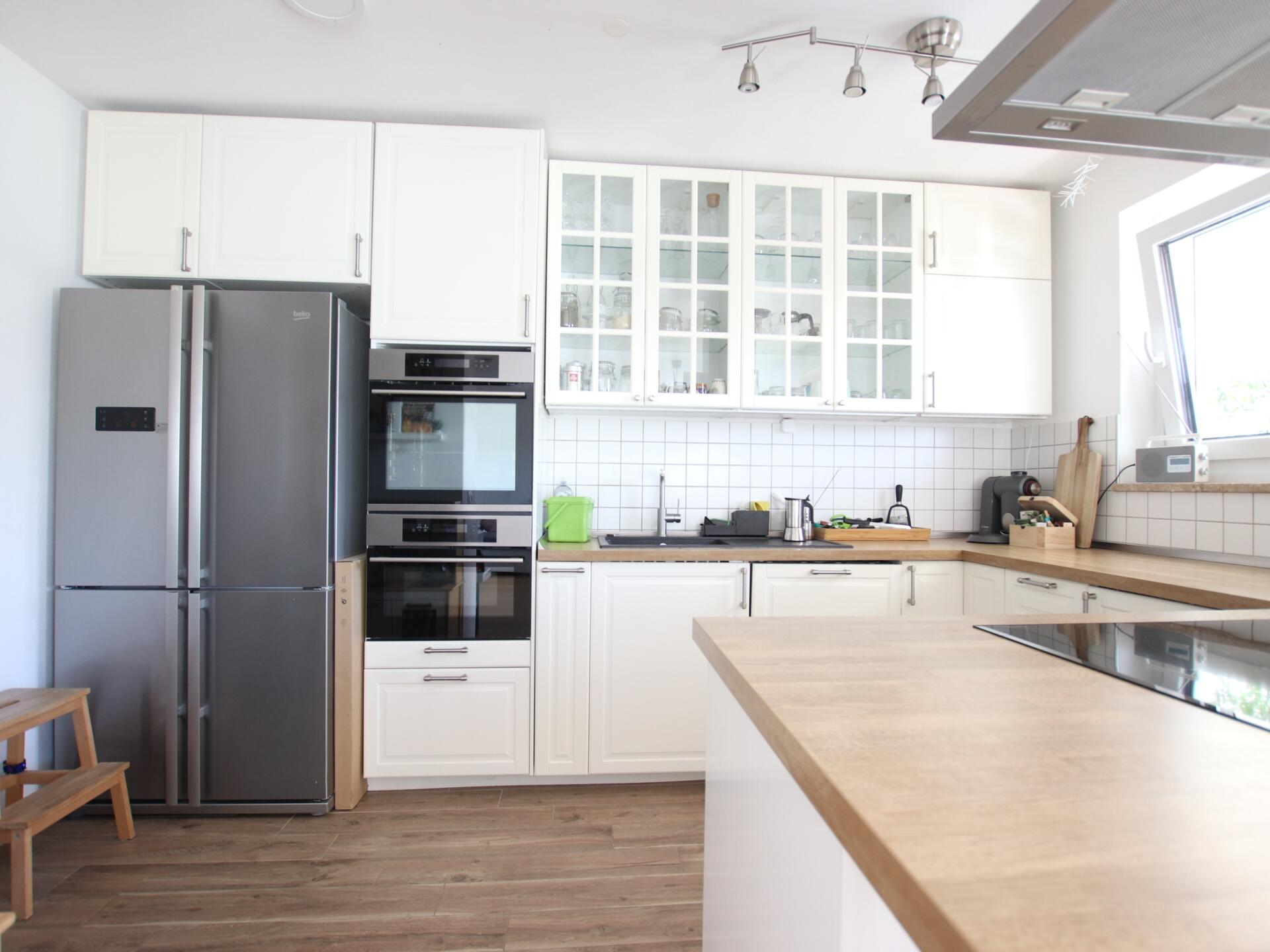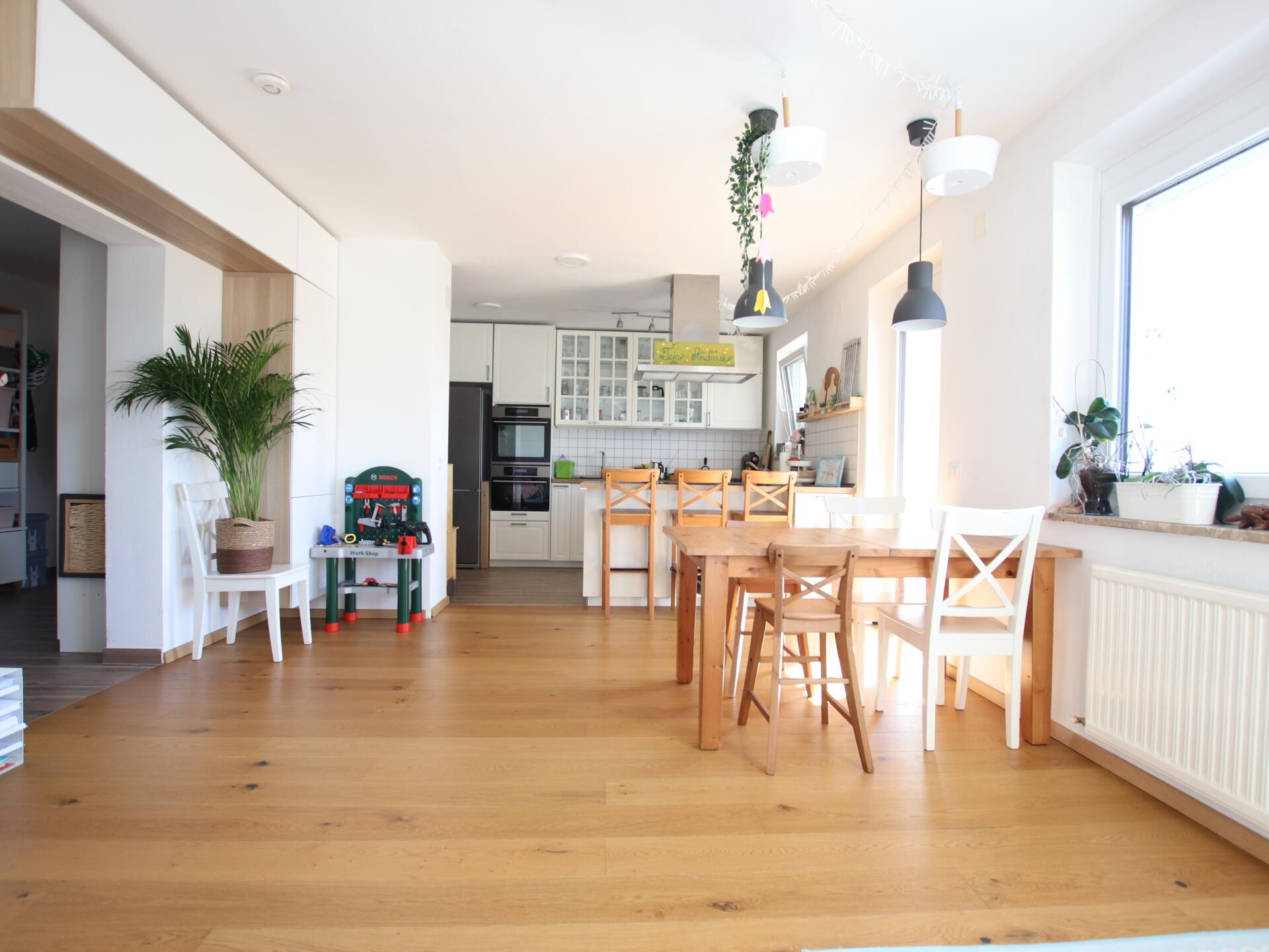 neue Eichendielenparkettböden geölt im Wohnzimmer in den Schlafzimmern und neue Fleisenböden im Vorraum und Küche.