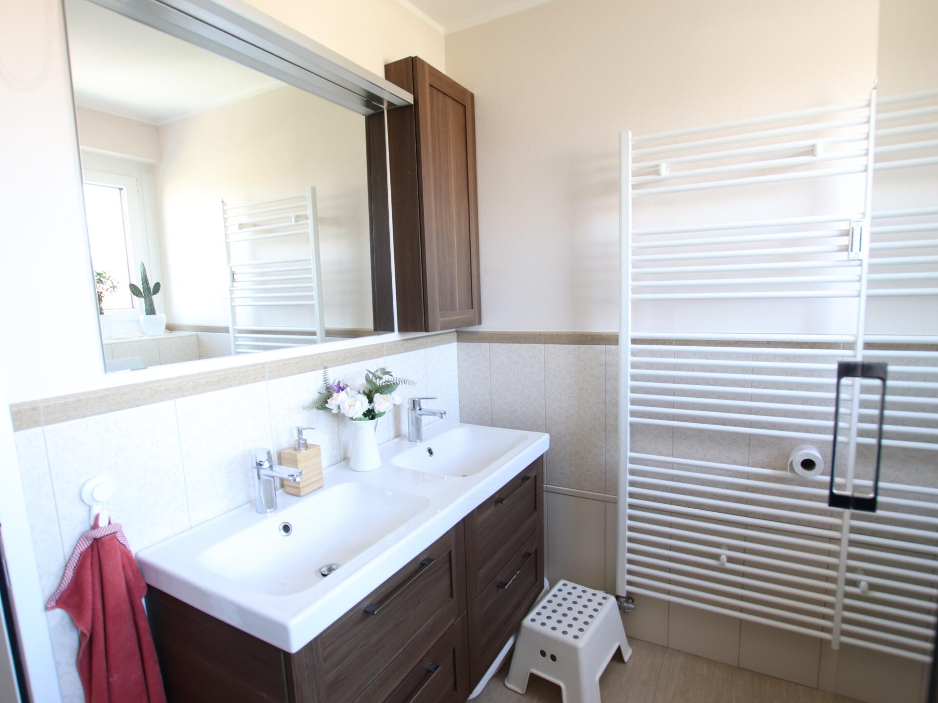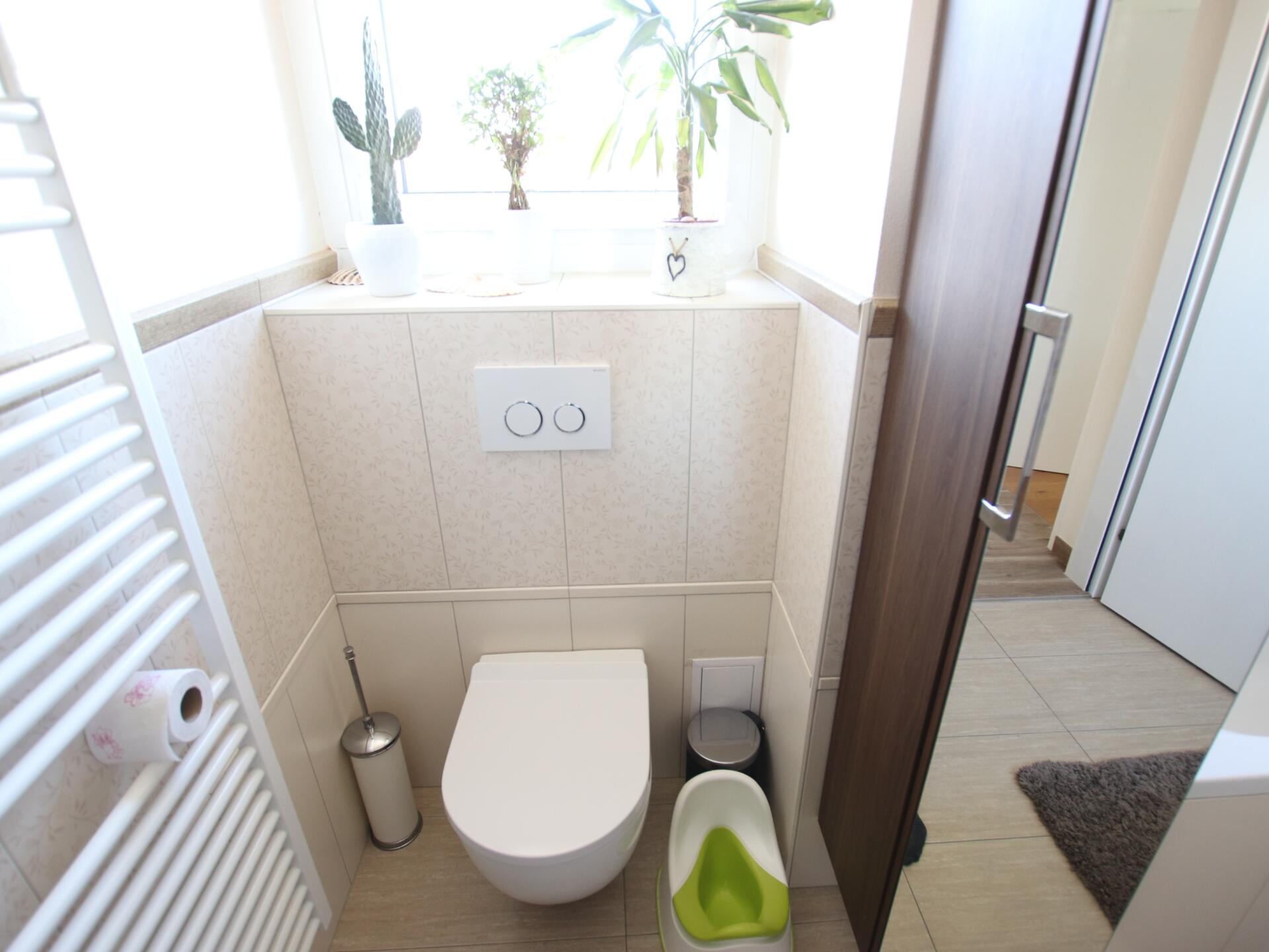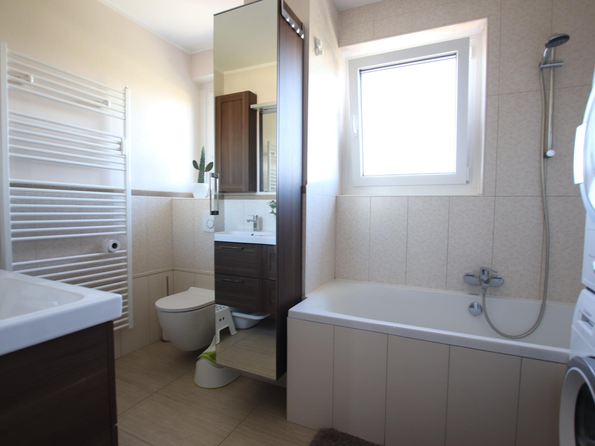 neues traumhaftes Bad mit Badewanne, Handtuchtrochner und WC (Fenster im Bad).