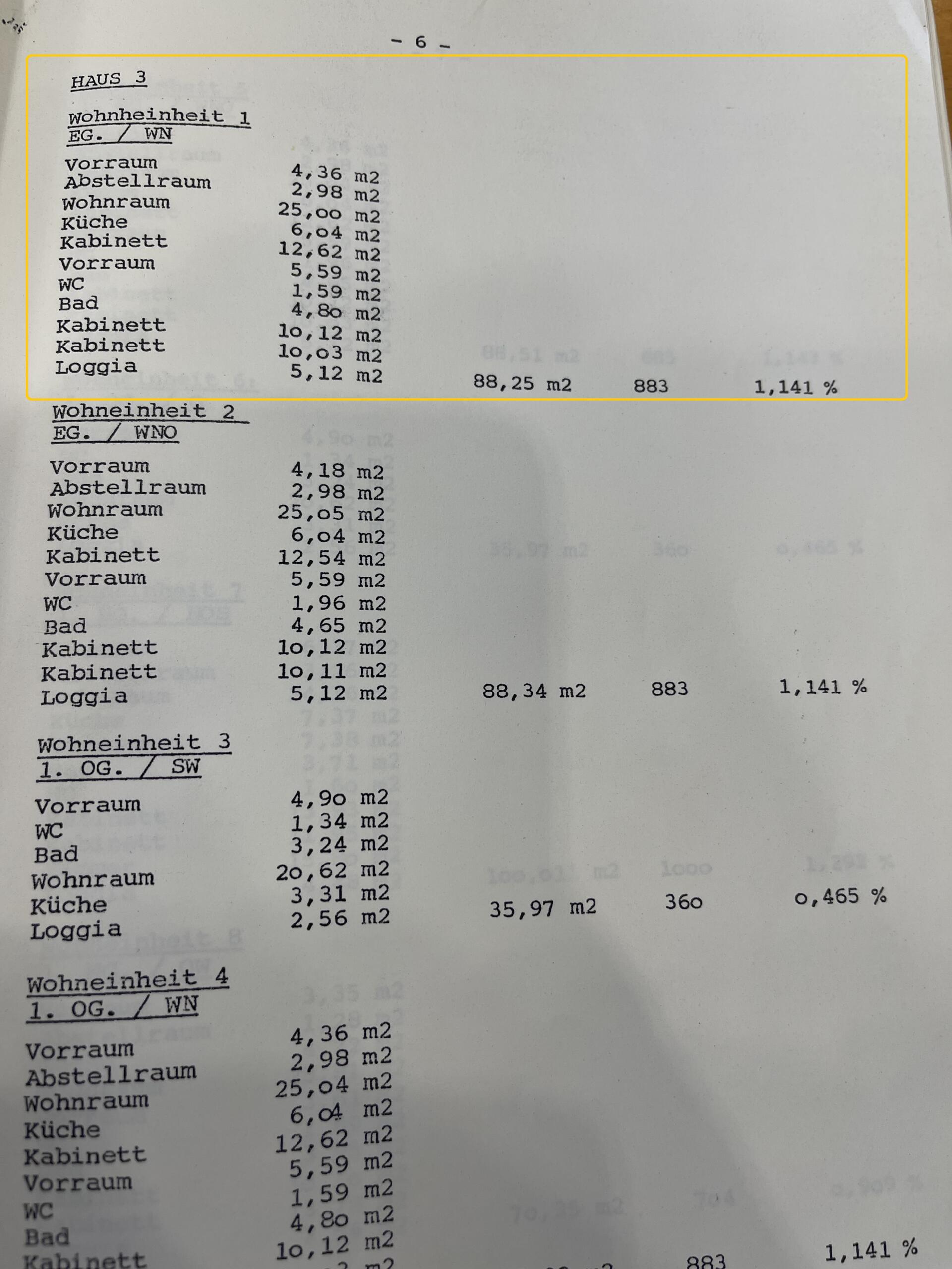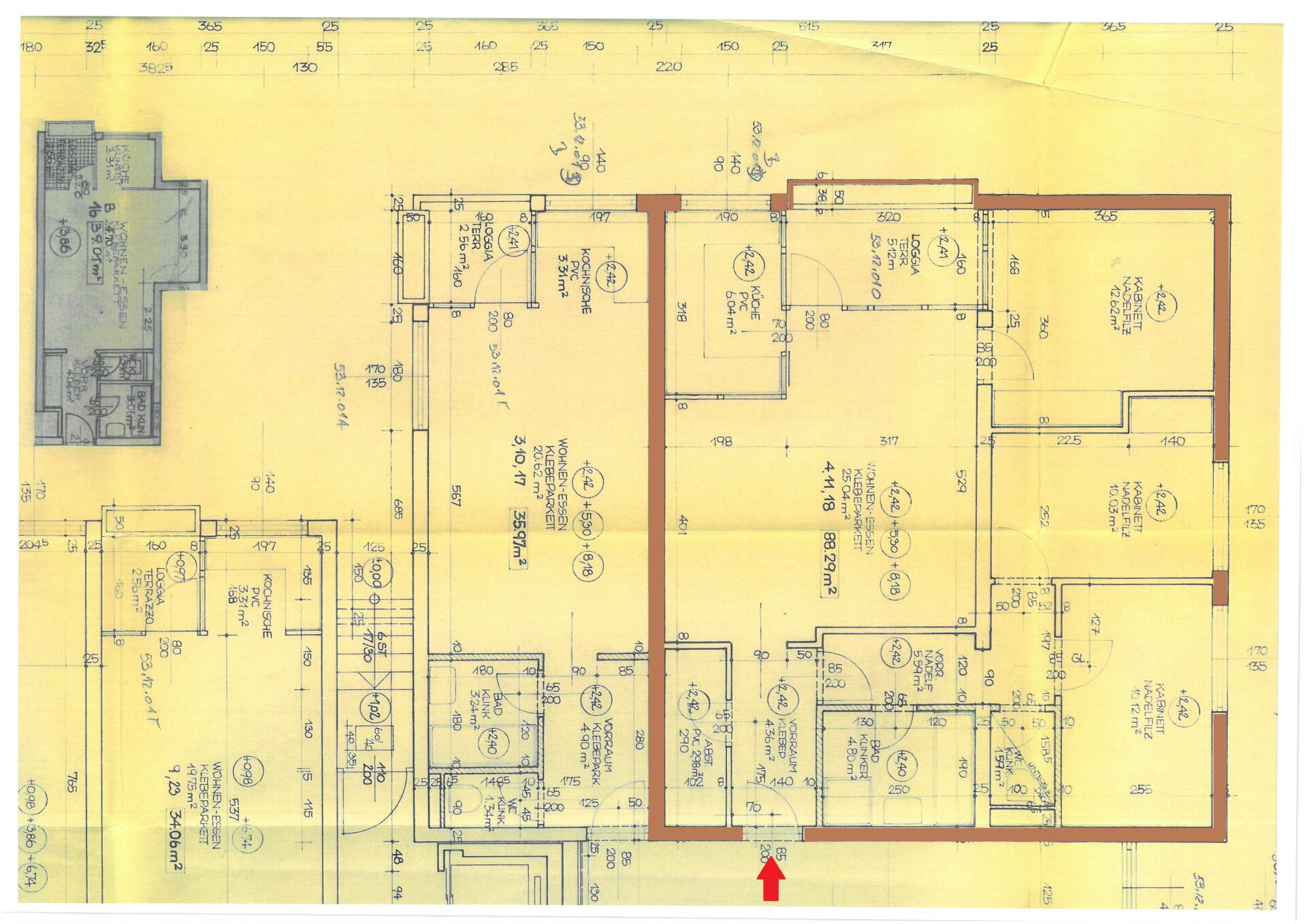 ... Küche (31,04m²) plus Westloggia (5,12m²) mit Blick ins Grüne, 1 Zimmer (12,62m²), 1 Vorraum zu den Zimmern (5,59m²), 1 Zimmer (10,12m²), 1 Zimmer (10,03m²), 1 Bad mit Dusche (4,80m²), 1 WC extra (1,59m²), 1 Abstellraum (2,98m²) und 1 Kellerabteil. Alle Flächenangaben lt. Plan und Nutzwertgutachten, ohne Gewähr!