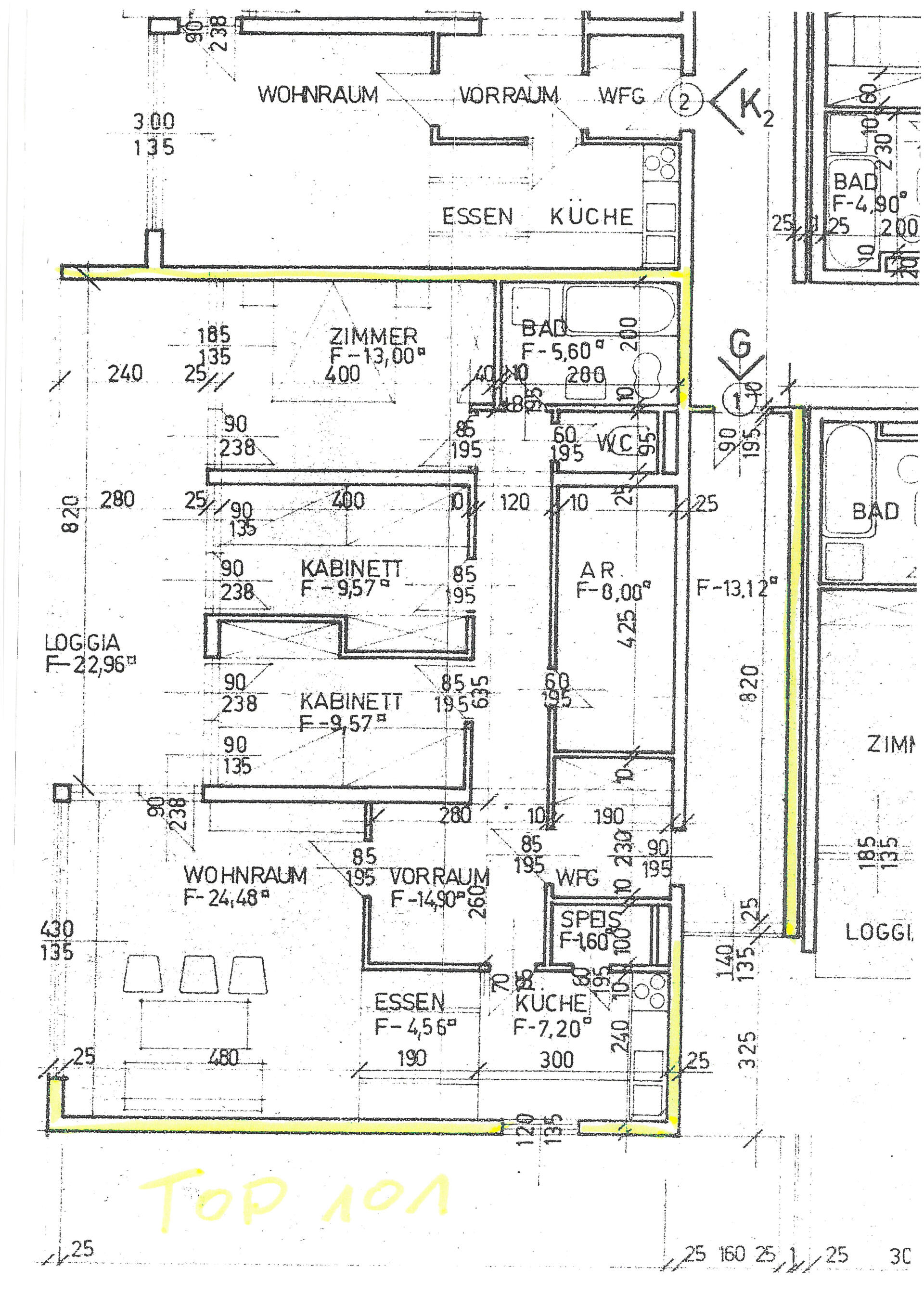 ...), 1 Diele (4,29m²), 1 großes Wohn-/Esszimmer (29,04m²) mit verglaster XXL Südloggia (22,96m²) mit Schiebefenster zum schliessen, 1 Küche mit Fenster (7,20m²), 1 Speis (1,60m²), 1 großer Vorraum (14,90m²), 1 Elternschlafzimmer (13,00m²), 1 Kinderzimmer (9,57m²), 1 Kinderzimmer (9,57m²) alle Zimmer mit Ausgang zur Loggia, 1 begehbarer Schrankraum (8,08m²), 1 Bad mit Badewanne (5,60m²), 1 WC extra (1,60m²). Alle Flächenangaben lt. Plan und Nutzwertgutachten und ohne Gewähr! Änderungen und Irrtümer sind vorbehalten!