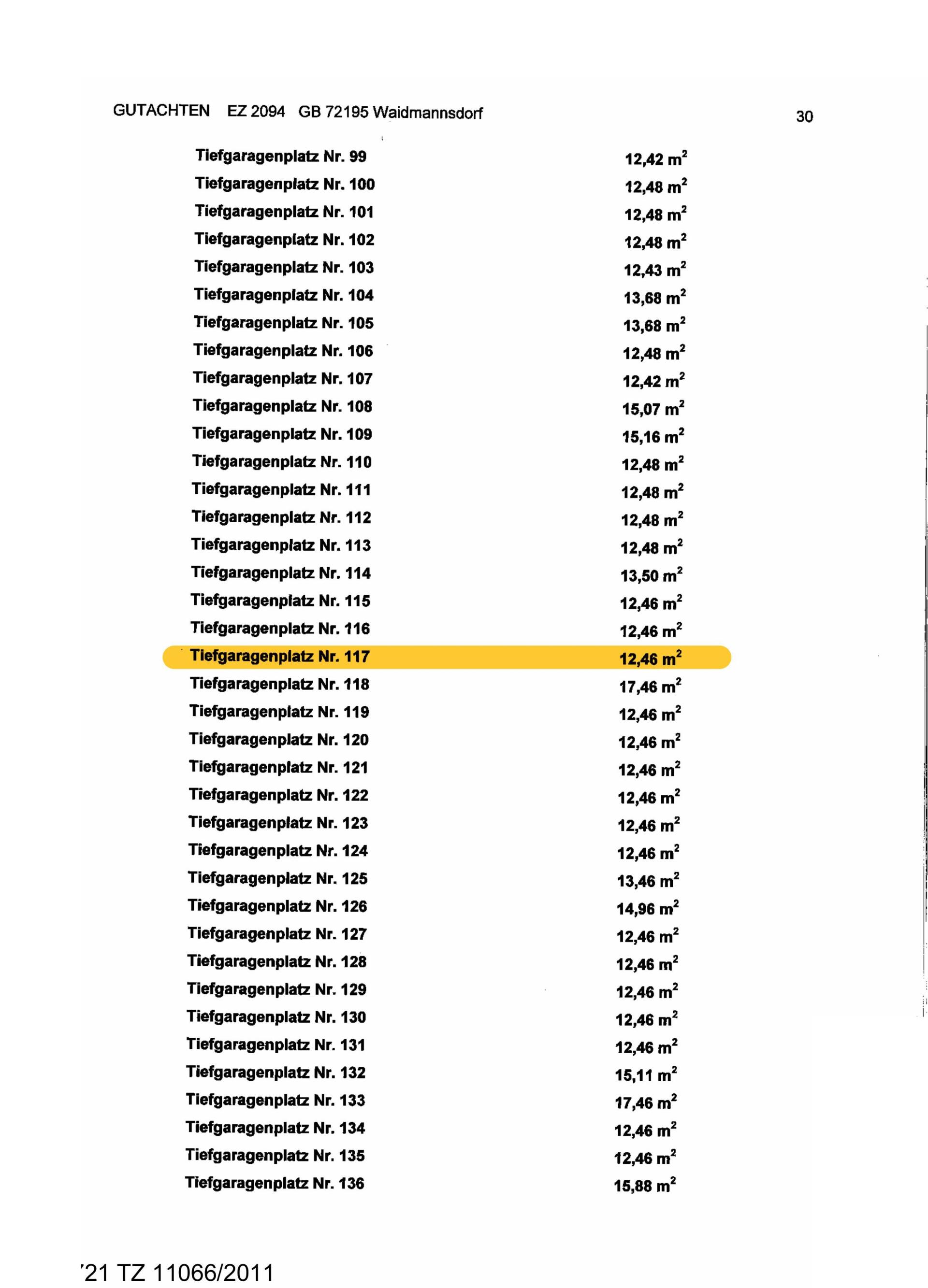 1 Tiefgaragenstellplatz TOP 117