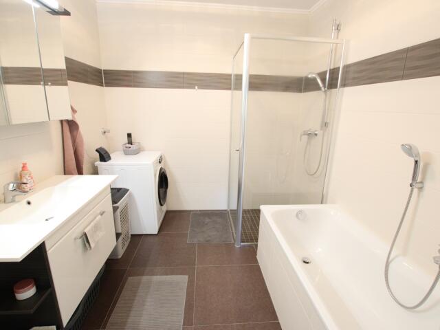 Bad mit Badewanne und barrierefreier Dusche und ein WC extra