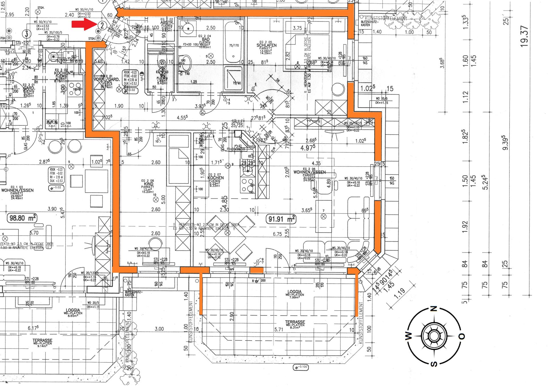 Erdgeschoss - Wohnung TOP 2/E, Süd-/Ostausrichtung (ECKWOHNUNG).