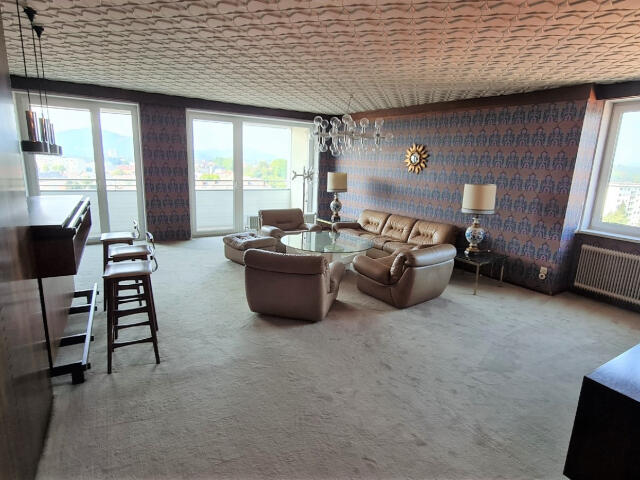 ...lichkeiten. Bei der großzügigen Wohnfläche von ca. 110 m²,+ 9 m² Loggia, hat man eine einmalige Sicht über ganz Klagenfurt, hin bis zu unseren wunderschönen Bergen. Die Wohnung ist derzeit wie folgt aufgeteilt.