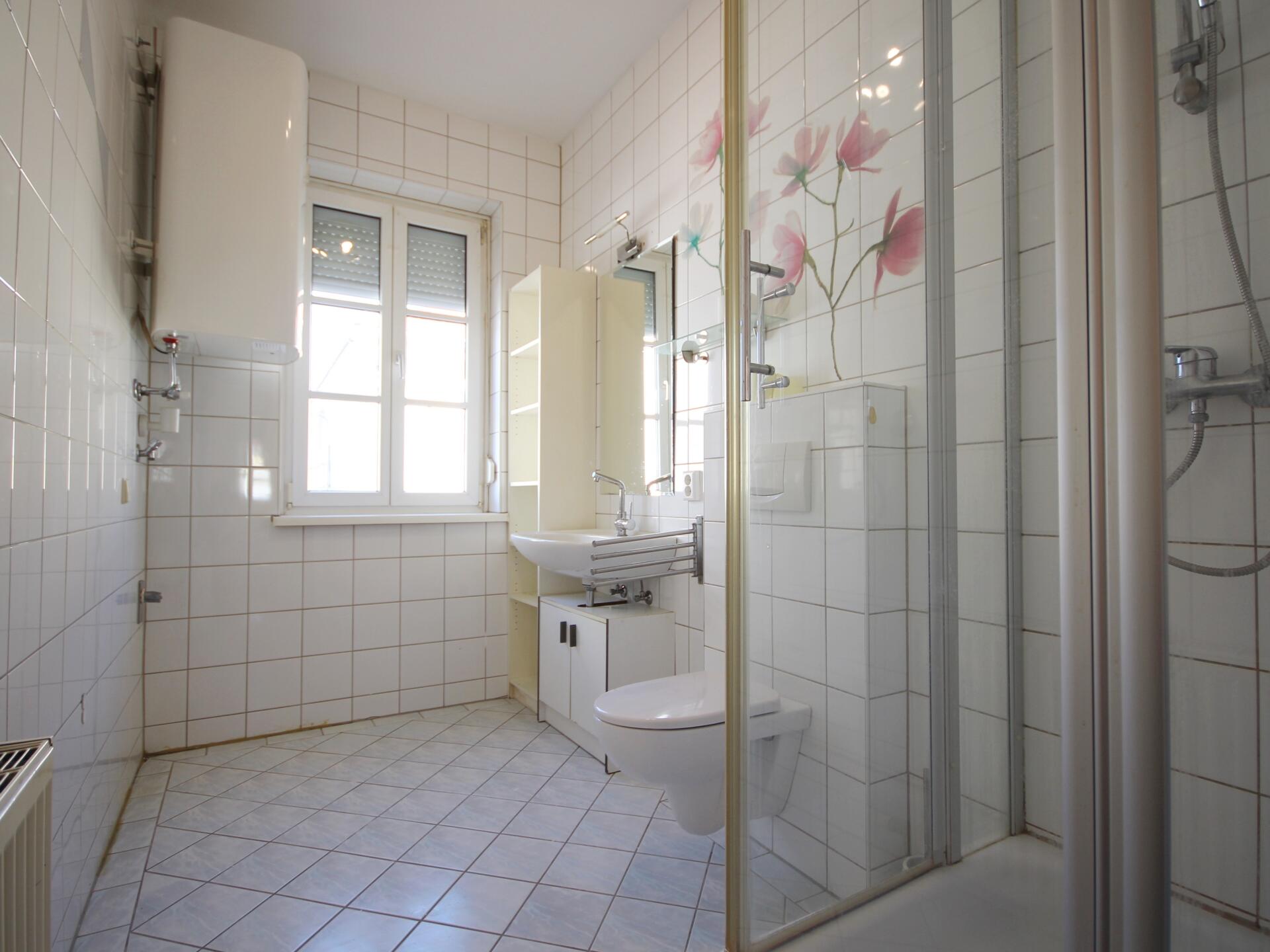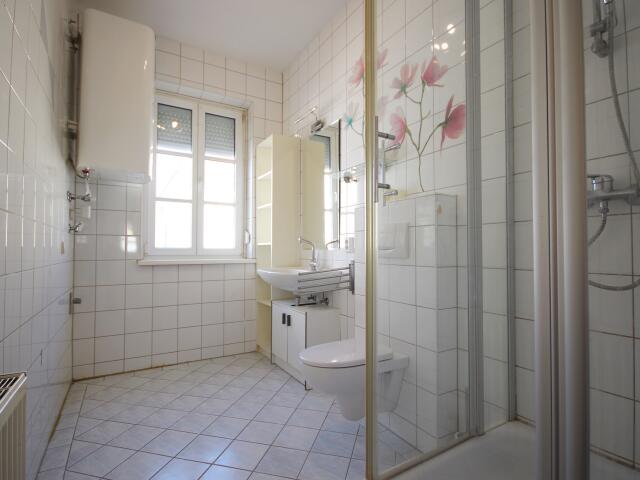 bestehend aus: Dusche, 1 Waschtisch mit Spiegel, WC und Waschmaschinenanschluss
