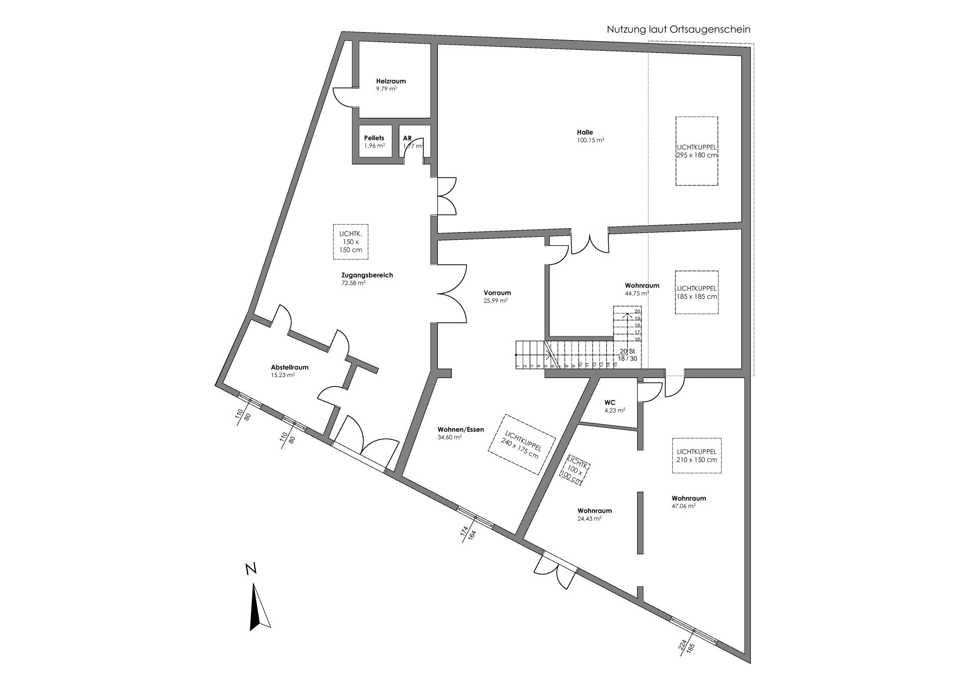 Heizraum, Pelletsraum, Garage und Lager: ca. 110 m² Nfl.