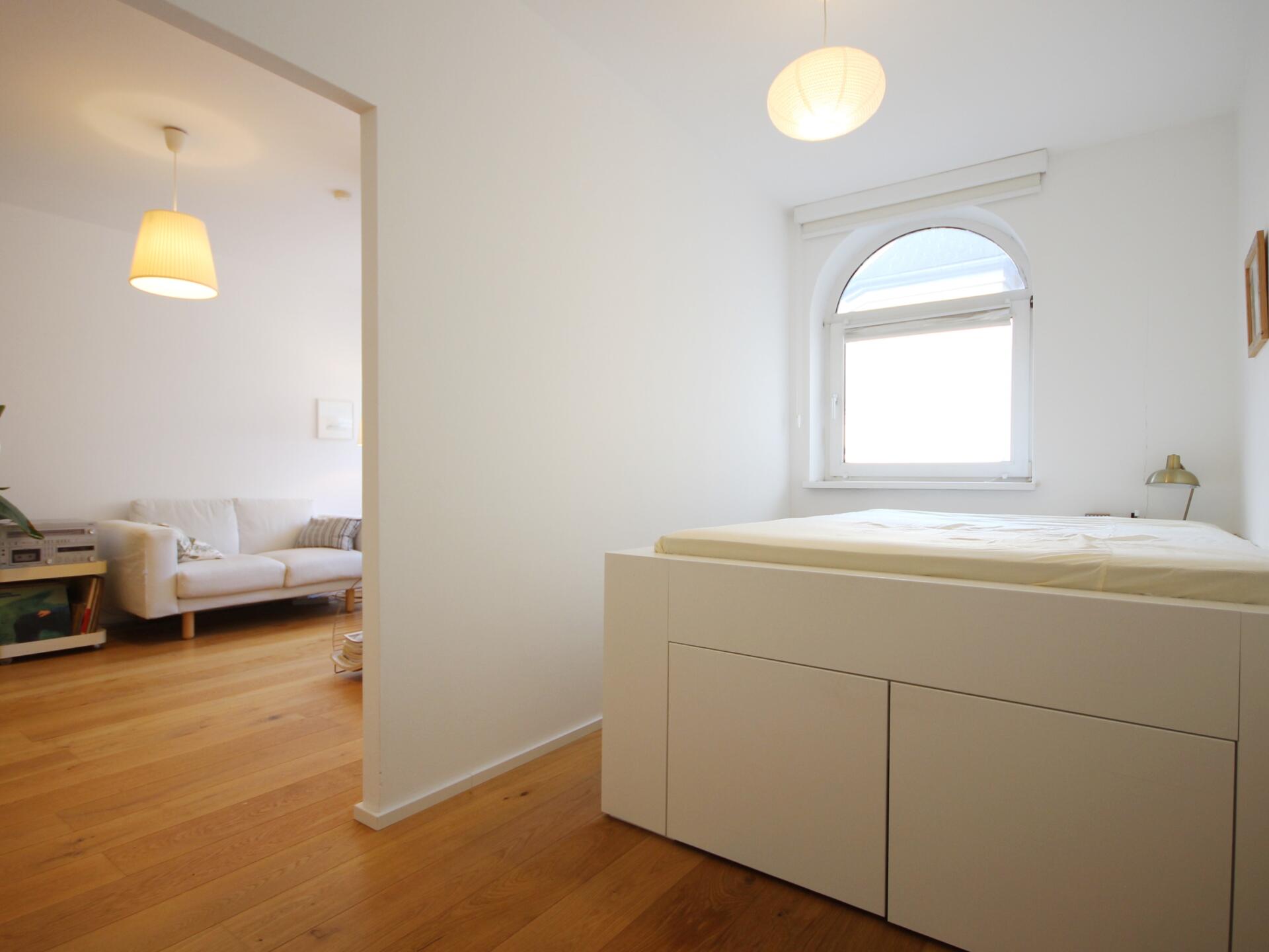 ...begehbarem Schrankraum, 1 Badezimmer mit einem Waschbecken, Badewanne, 1 geräumiger Abstellraum inkl. Waschmaschinenanschluss.