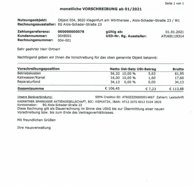 € 113,68-- inkl. Stellplatz, Rücklagen und Verwaltung