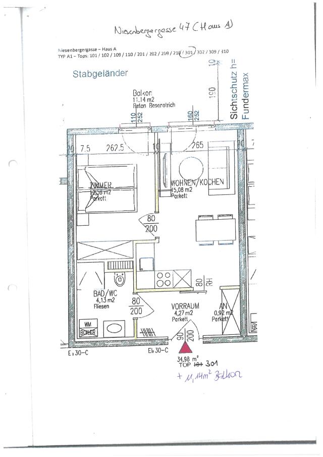 34,98m² plus ca. 11,14m² Balkon - Wohnung TOP A302