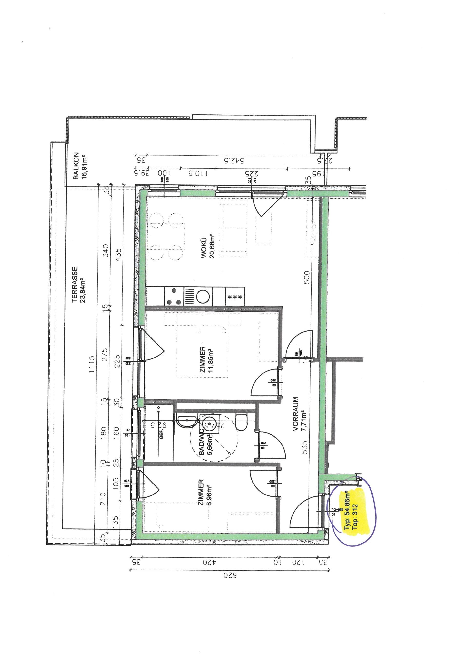 54,11m² plus ca. 16,91m² Balkon und 23,84m² Terrasse - Wohnung TOP 312