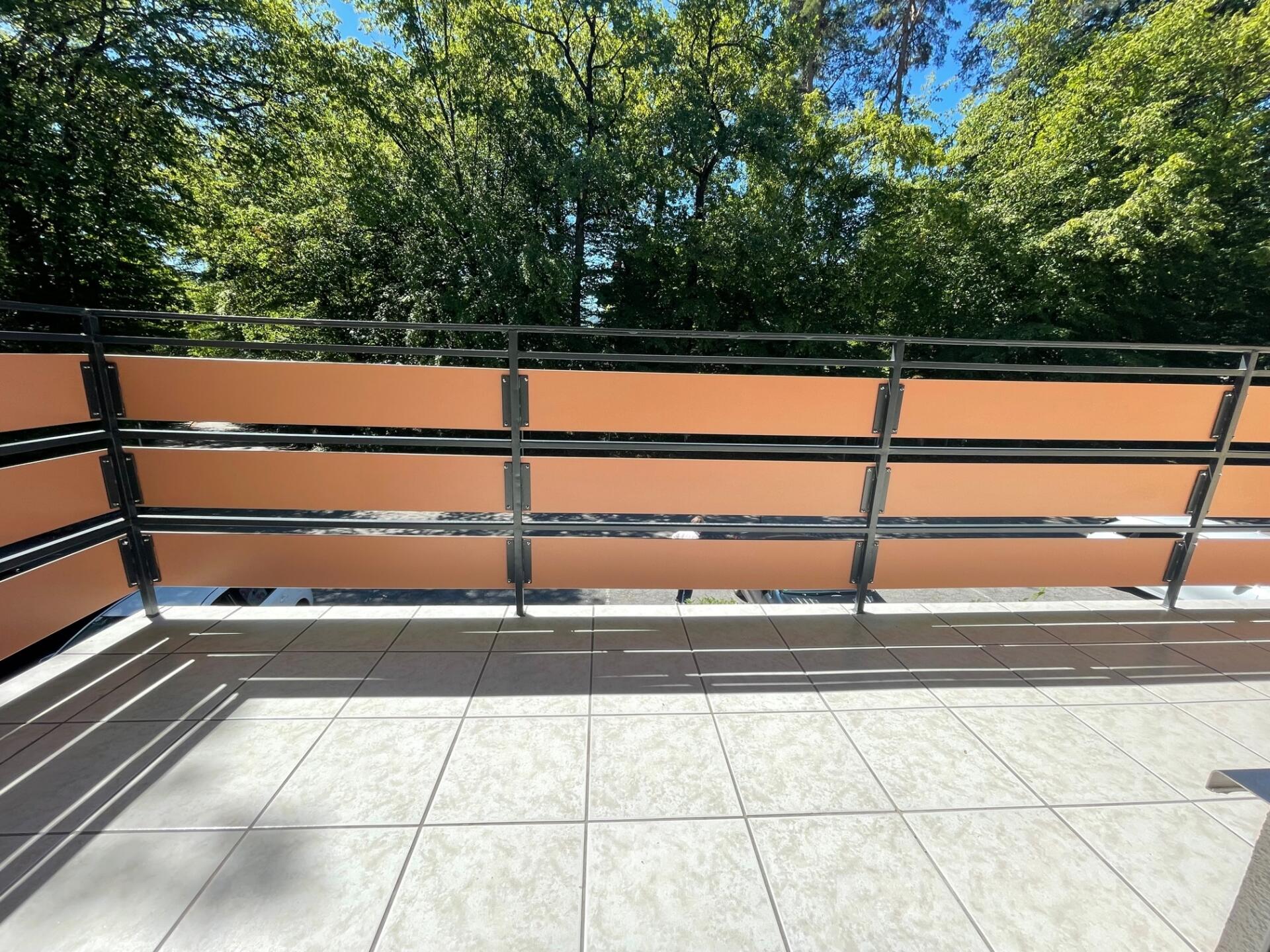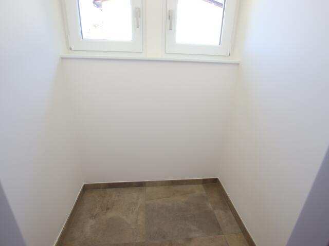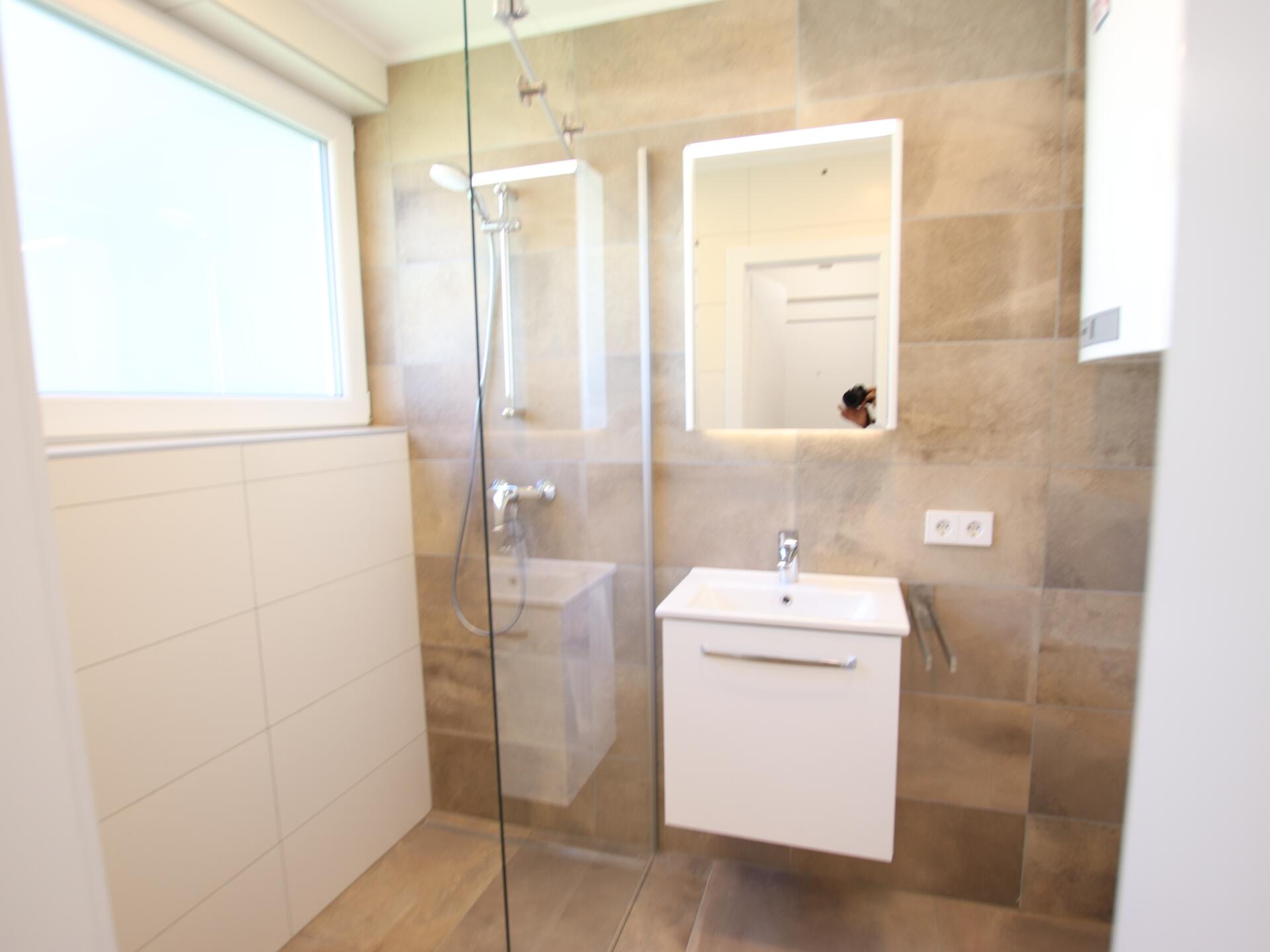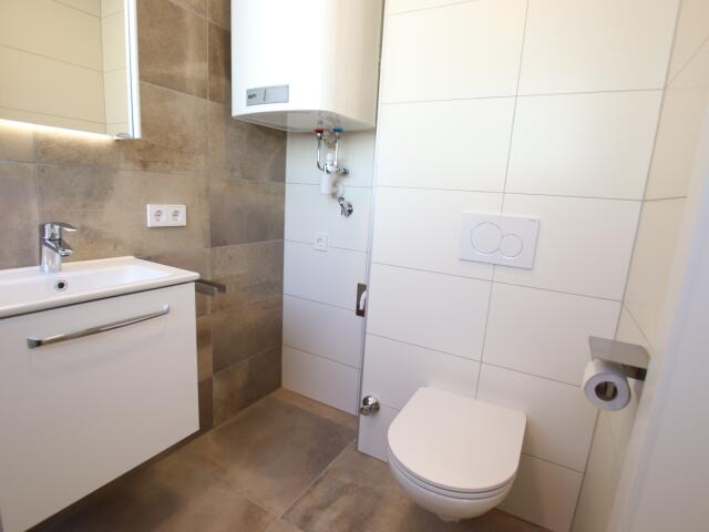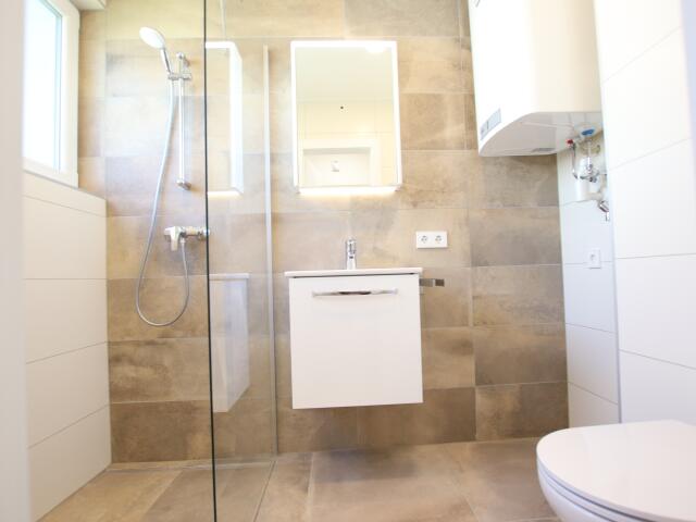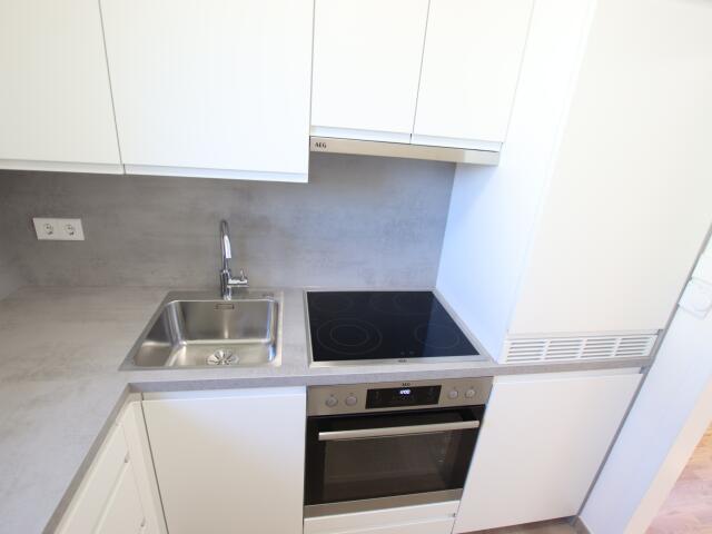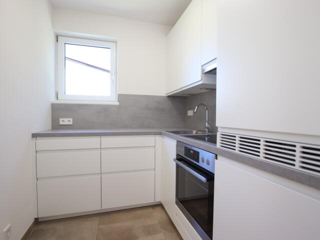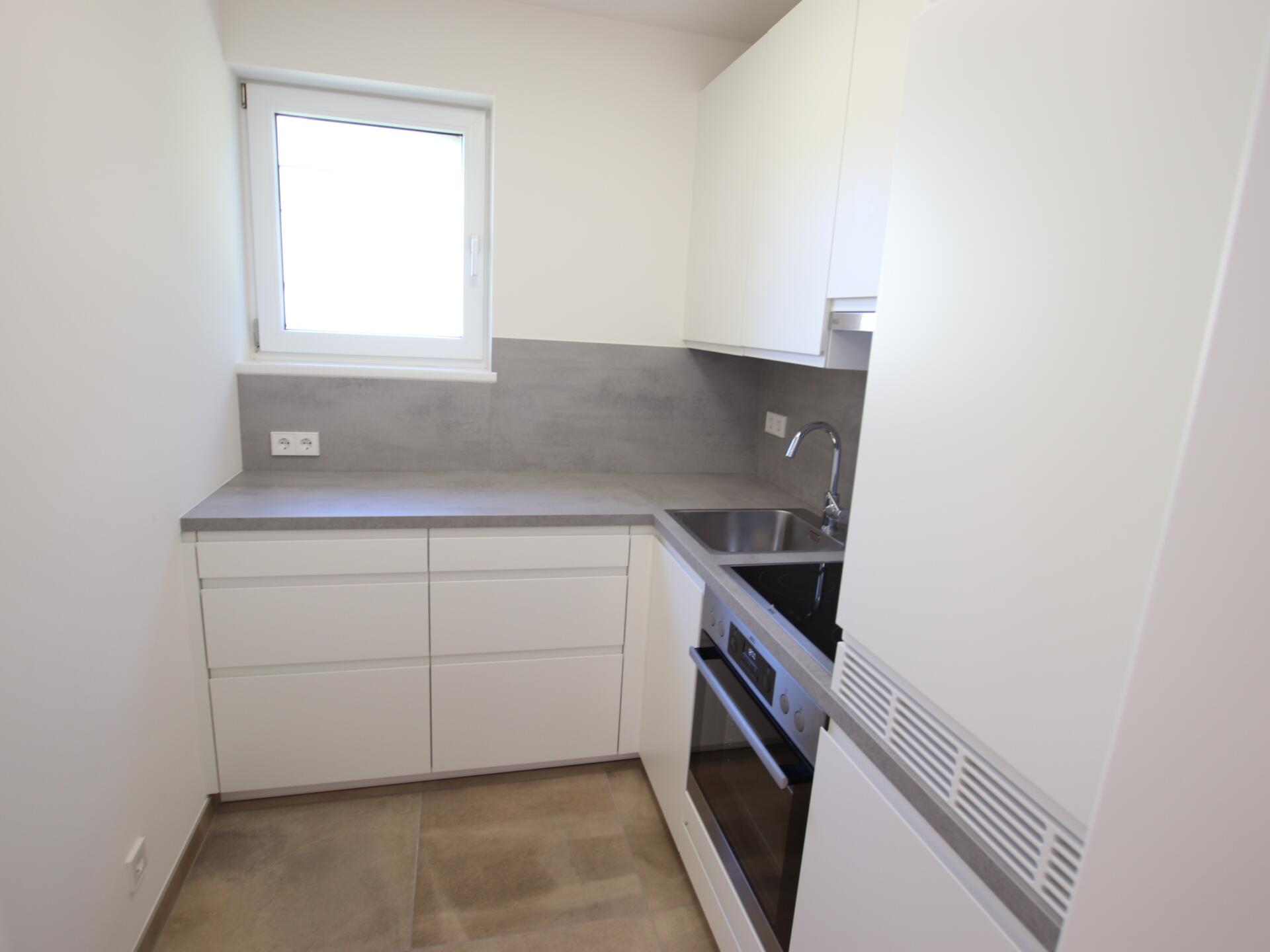 ...l. Süd-/Westbalkon im 1. Stock ohne Lift gelegen, bestehend aus 1 Vorraum, 1 großes Wohn-/Ess-/Schlafzimmer mit ca. 7,50m² Süd-/Westbalkon mit herrlichem, sonnigen und ruhigen Ausblick, 1 neue möblierte DAN-Küche mit Geräten (Geschirrspüler, Kühlschrank mit Gefrierfach, Backherd mit Ceranfeldplatte, etc.) und mit Fenster, 1 neues, traumhaftes und barrierefreies Bad (mit Fenster) mit Dusche und WC und 1 Abstellraum. Die Heizung erfolgt mittels Fußbodenheizung (Bad und Vorraum) und Infrarotpaneele im Wohn-/Schlafzimmer. Zur Wohnung gehört ein fixer PKW-Stellplatz TOP 46. Sonnige und ruhige Aussichtslage in einer kleinen und sauberen Wohnhausanlage! Bitte keine Hunde!
