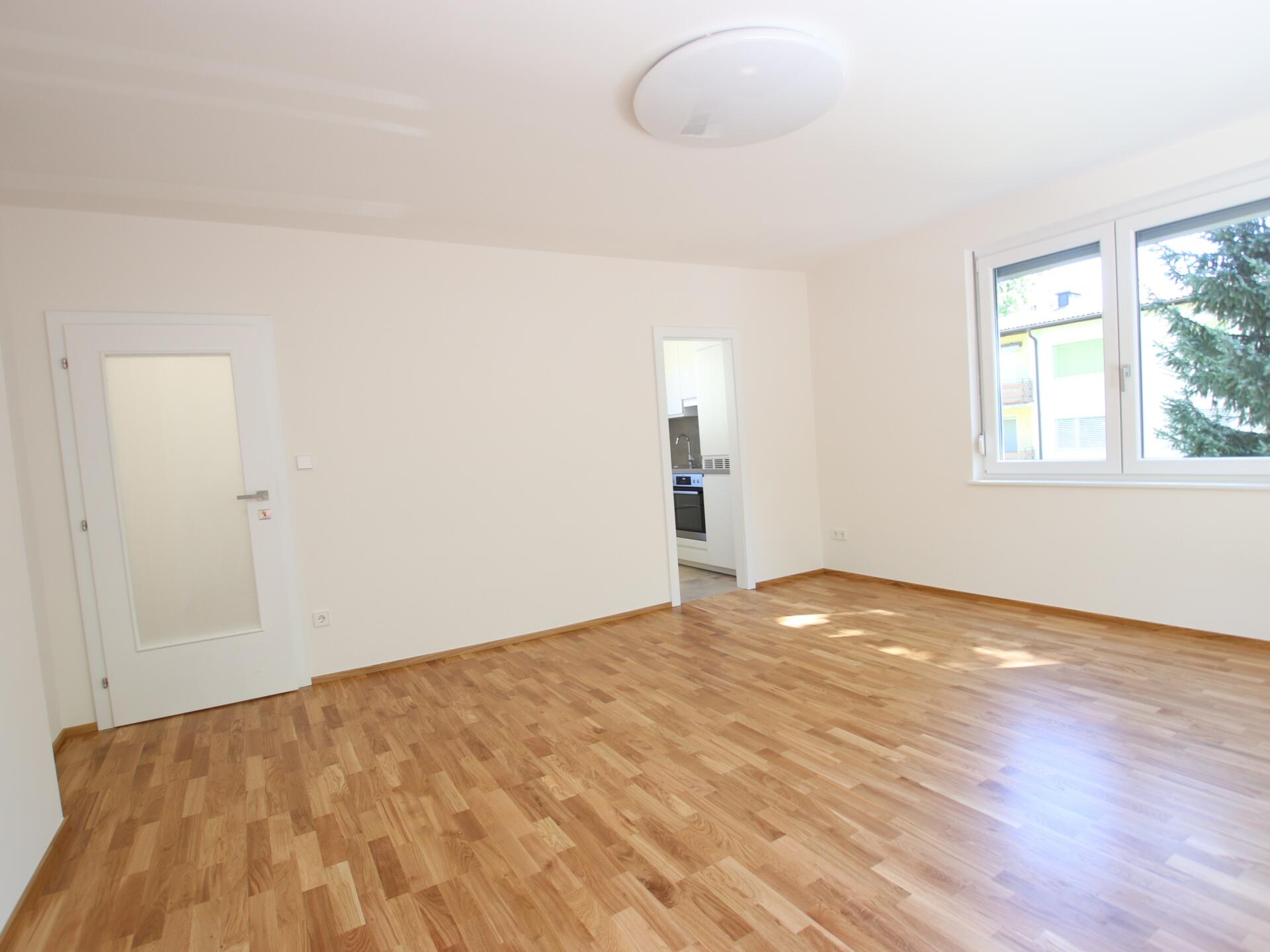 Neue Parkettböden im Wohn-/Schlafzimmer, neue Fliesen im Vorraum und in der Küche, neue Tischler-Innentüren in Weiß, neue Wohnungs-Eingangstüre, Kunststoffenster (3-fach) mit neuen Außenrollos, großer Balkon mit elektrischer Markise, neues hochwertiges Bad mit barrierefreier Dusche und mit Fenster. 1 fixer PKW-Stellplatz TOP 46. Alle Räume mit neuen LED-Deckenlampen ausgestattet! Schlüssel umdrehen und einziehen!