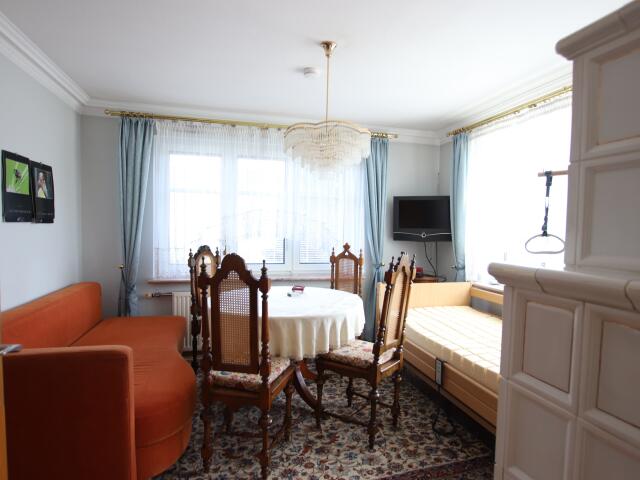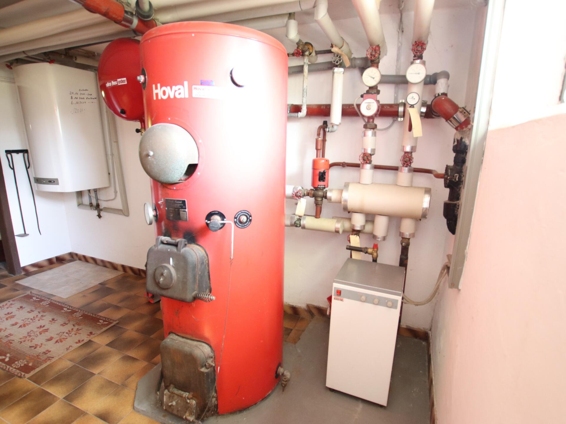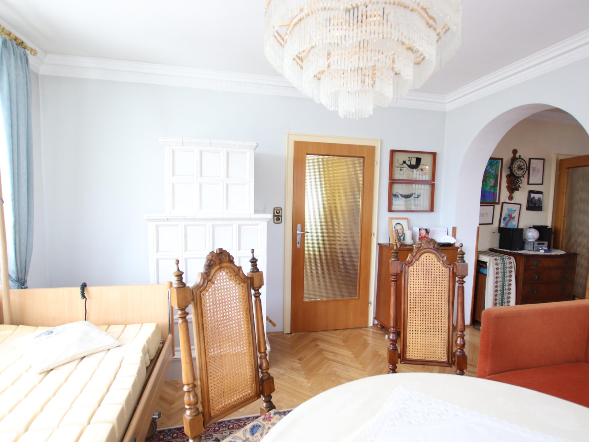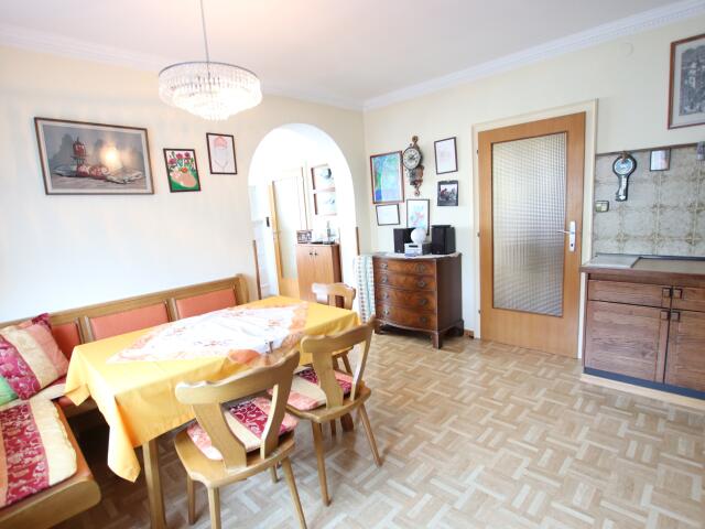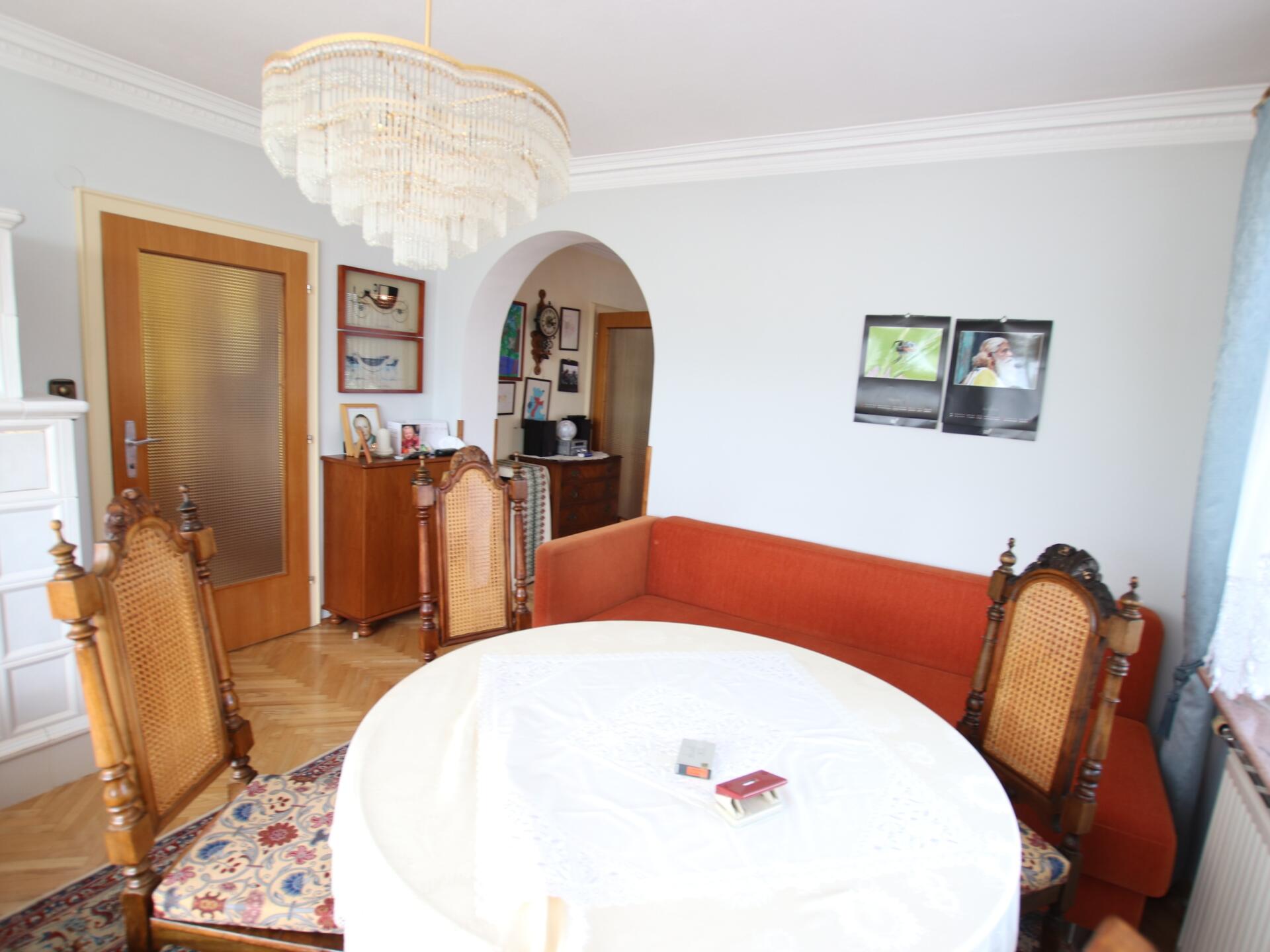 Zentralheizung (Wasserzentralheizung auf Elektro) und schöner Kachelofen im Esszimmer.