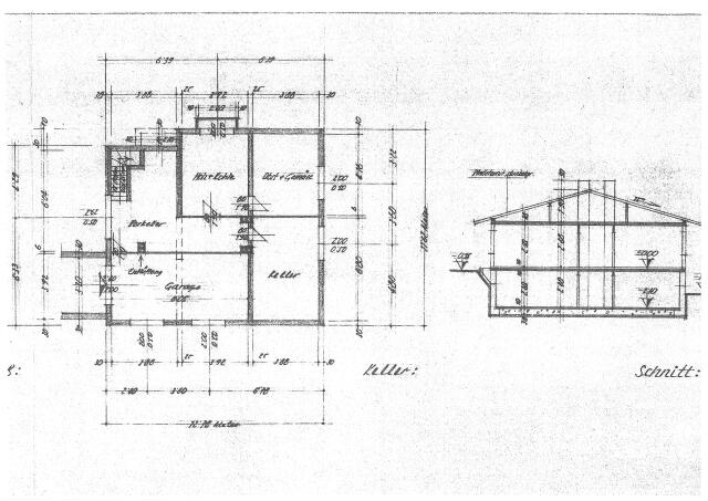 Kellergeschoss ca. 120,00m²: 1 Vorraum mit Heizraum 22,00m², 1 Wäsche- und Trockenraum 23,00m², 2 große Abstellräume je 18,00m² und 1 Garage 30,00m².