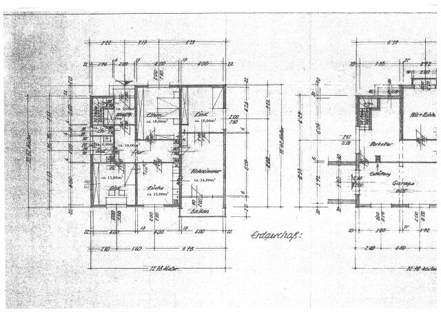 Erdgeschoss ca. 120,00m²: Windfang (5,00m²), 1 Abstellraum/Speis (1,00m²), 1 großer Vorraum/Diele (19,00m²), 1 Wohnküche Süd (15,00m²), 1 großes Wohnzimmer Süd (24,00m²) mit Ausgang zur Südterrasse/Balkon (8,00m²), 1 Elternschlafzimmer Nord (18,60m²), 1 Kinderzimmer Nord (16,00m²), 1 Kinderzimmer oder Esszimmer Süd/West (15,00m²) 1 Bad (4,95m²) und 1 WC (1,73m²). Das Wohnzimmer kann noch einfach vergrößert werden zum Kinderzimmer Nord, die Wand ist nur eine Holzwand.