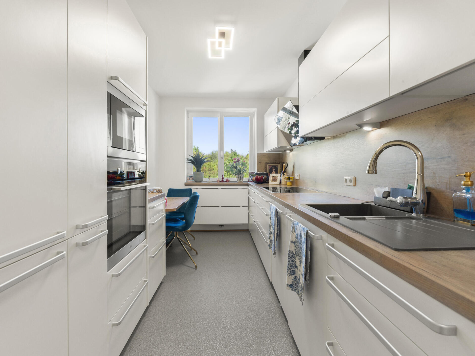 neue Einbauküche mit Geräten (2019/2020), neues Bad (2019/2020) mit Fußbodenheizung und mit barrierefreier Dusche und Fenster, Vorraum-Schiebekasten, Parkettböden neu geschliffen und Wohnung neu ausgemalen, doppelte Eingangstüre, 2 PKW-Stellplätze, 2 Kellerabteile.
